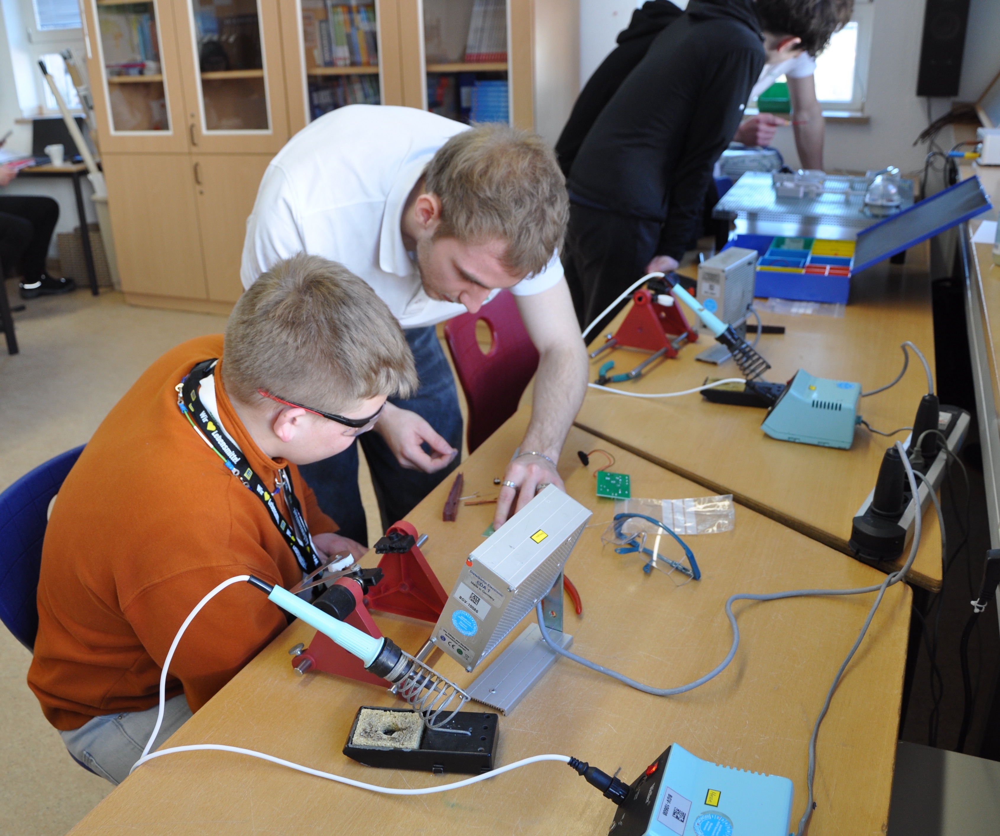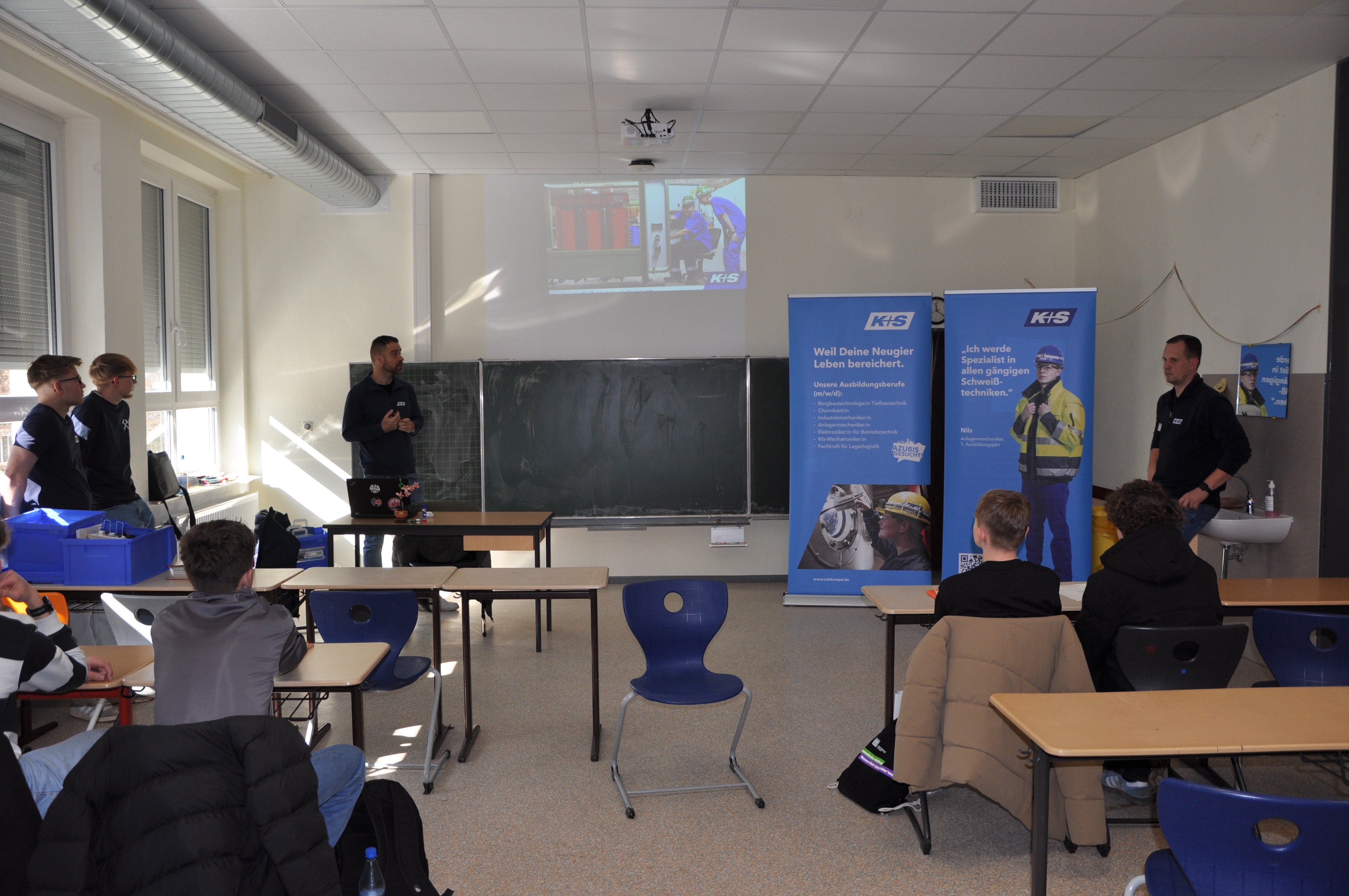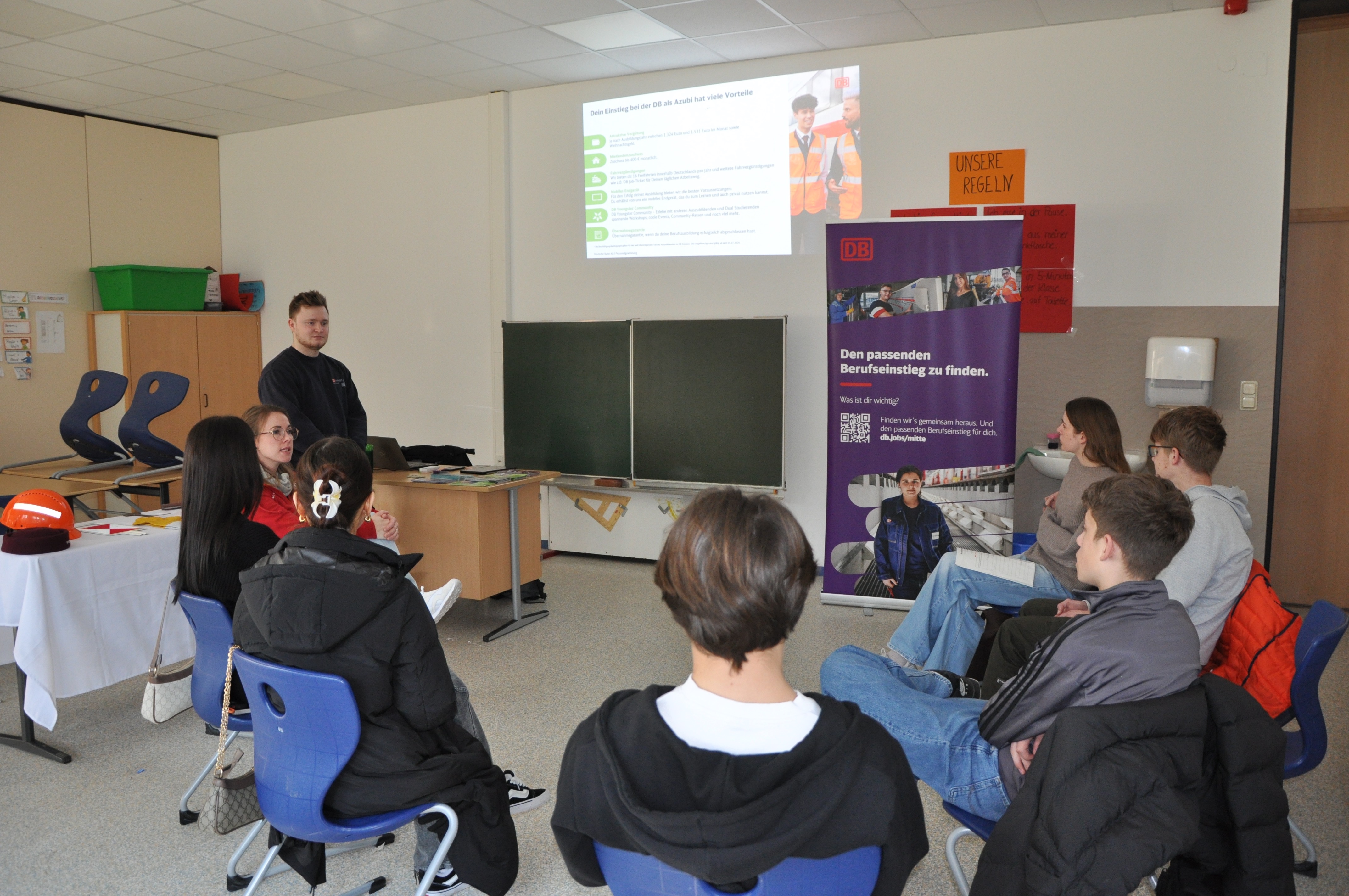 Berufliche Orientierung wird an der Jakob-Grimm-Schule seit langem großgeschrieben. Hier haben unsere Schüler der Vorabschlussklassen aller Schulzweige jedes Jahr die Gelegenheit, auf der Berufsinformationsmesse Unternehmen aus der Region kennenzulernen und Gespräche rund um das Thema Ausbildung zu führen. Ob Betriebe der Stadt und der Region, Ämter und öffentliche Einrichtungen, Polizei oder Bundeswehr – alle kommen sie größtenteils in die Schule oder laden zu sich selbst ein. Das Ziel: Junge Menschen sollen einen lebendigen Eindruck von der Vielfalt der Berufsbilder bekommen, die ihre Region zu bieten hat. In diesem Jahr waren es rund 200 Schüler unserer Vorabschlussklassen (H8, R9, G9), die in drei Zeitblöcken insgesamt 33 Betriebe und Ausbildungseinrichtungen kennenlernen durften.