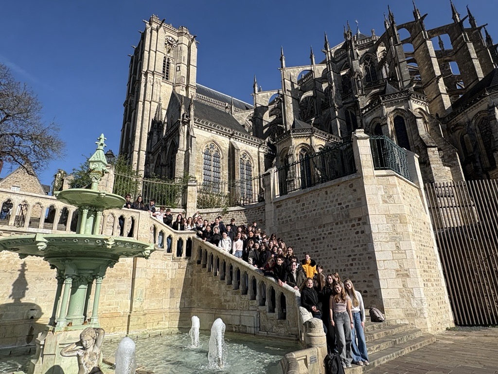 Die 50-jährige Partnerschaft von Argentan und Rotenburg wurde auch dieses Jahr mit dem jährlichen Frankreichaustausch neu belebt und gestärkt. Zusammen machten sich die Schülerinnen und Schüler der 8. und 9. Klassen mit ihren Lehrerinnen Frau Dittmar, Frau Nonn-Volland und Frau Lipphardt früh am Morgen des 12.03.2026 auf den langen Weg mit dem Bus nach Argentan. Weitestgehend erholt, wurden wir am nächsten Tag im Foyer des Collège François Truffaut von der Schulleiterin Madame Gaddhini und anderen Lehrern/ Lehrerinnen zweisprachig willkommen geheißen. Auch für eine Stärkung mit Kuchen und Getränken wurde gesorgt. Für uns Schüler ging es dann für zwei Stunden in den Unterricht und anschließend wurde der knurrende Magen mit einem deutschen Mittagessen in der Kantine gestillt. Mit gefülltem Magen und guter Laune wurden wir von den Schülern/Schülerinnen des LCE durch Argentan geführt. Trotz ein wenig Regen wurden uns die schönsten und historisch bekannten Orte von Argentan stolz präsentiert.